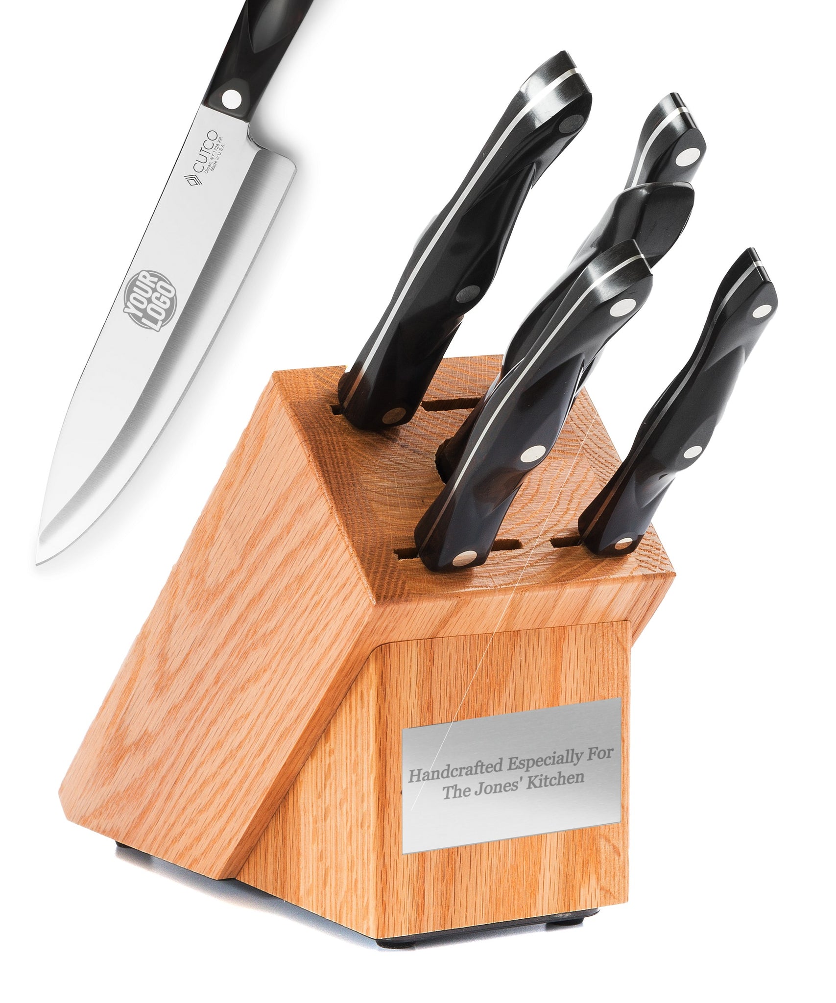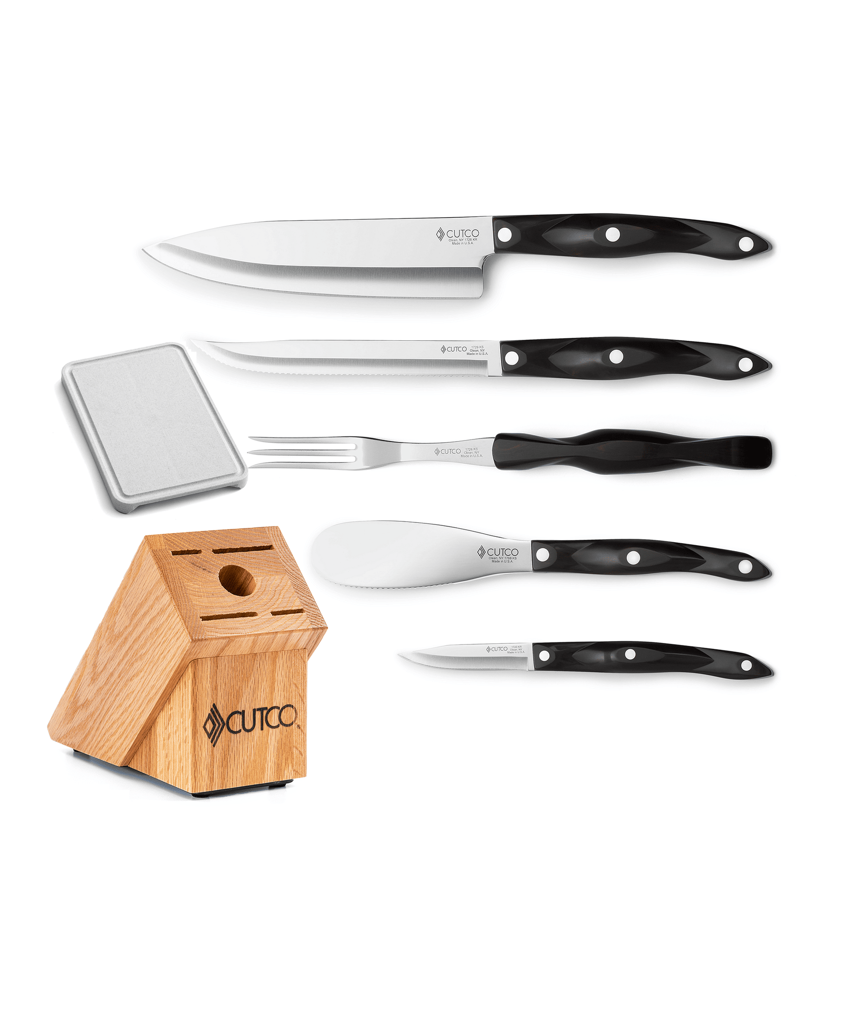 This 6-Pc. Essentials Set features super-sharp American-made cooking knives that deliver clean cuts and make prep work fast and easy. Complete with an oak block that will safely store and protect the edges of your knives